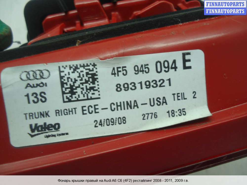 | Фонарь крышки правый | Audi A6 C6 (4F2) рестайлинг 2008 - 2011 | 2009; Бензин; 3.0; TFSI; Седан; ; Полный;