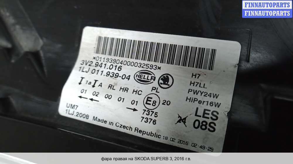фара правая | SKODA SUPERB 3 |